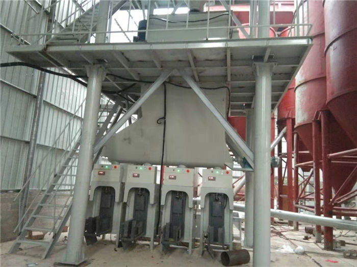五、該套設(shè)備在常規(guī)自動(dòng)包裝機(jī)的基礎(chǔ)上,還配備有高效散裝裝車機(jī),該系統(tǒng)可對(duì)4米及以下槽罐車進(jìn)行自動(dòng)散裝作業(yè),滿足工地大批量散裝砂漿的使用需求。